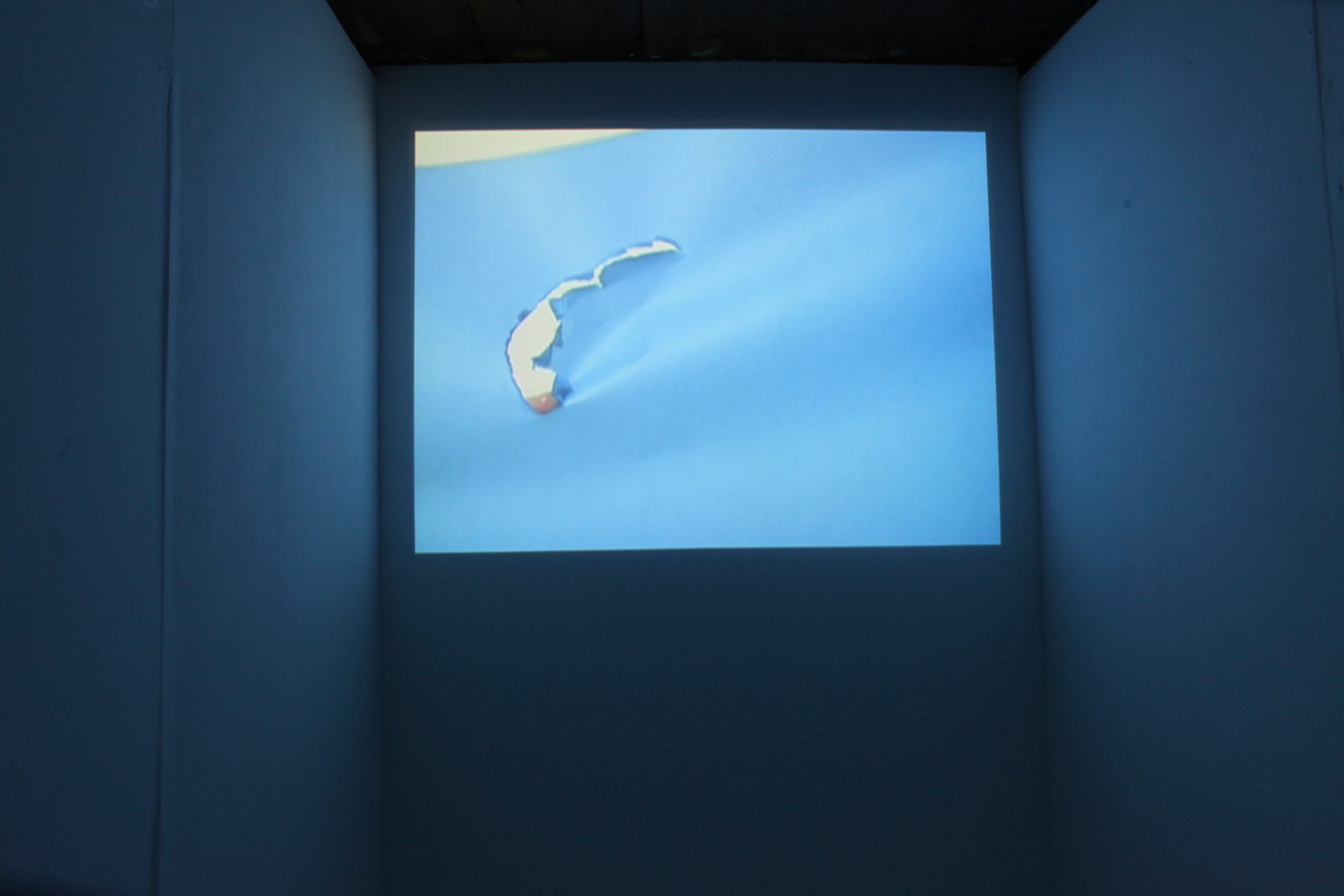 室内の風景が映し出された9点の映像は、2人の身体によって剥ぎ取られ、そのスタジオの白い壁面へと切り替わる。