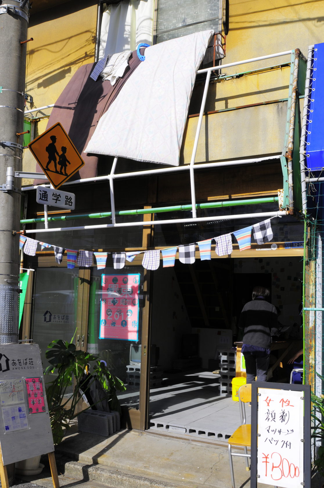 会期:2012.10.19 – 11.25場所:東京都墨田区 あをば荘展示場所である「あをば荘」でのリノベーションの様子をリサーチし台本にしたものを、お互いの身体を用いて再演した映像インスタレーション。また、前日に起こった会話を録音したものを聞きながら再演した「 昨日の今日」というパフォーマンスも行なわれた。企画: あをば荘の人々NPO向島学会×東京アートポイント計画「墨東まち見世2012」特別企画「私たちがおすそわけできること」